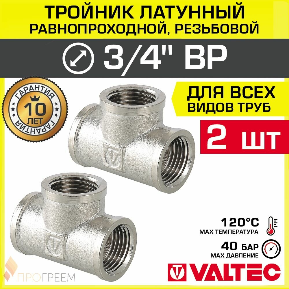 Купить 2 шт — Тройник 3/4″ ВР равнопроходной VALTEC, латунный никелированный / Трехходовой фитинг ДУ 20 с внутренней резьбой для монтажа труб системы отопления и водоснабжения, арт. VTr.130. N.0005 с доставкой по всей России. 2 шт — Тройник 3/4″ ВР равнопроходной VALTEC, латунный никелированный / Трехходовой фитинг ДУ 20 с внутренней резьбой для монтажа труб системы отопления и водоснабжения, арт. VTr.130. N.0005: сравнение цен, характеристики, фото, актуальное наличие и цены.