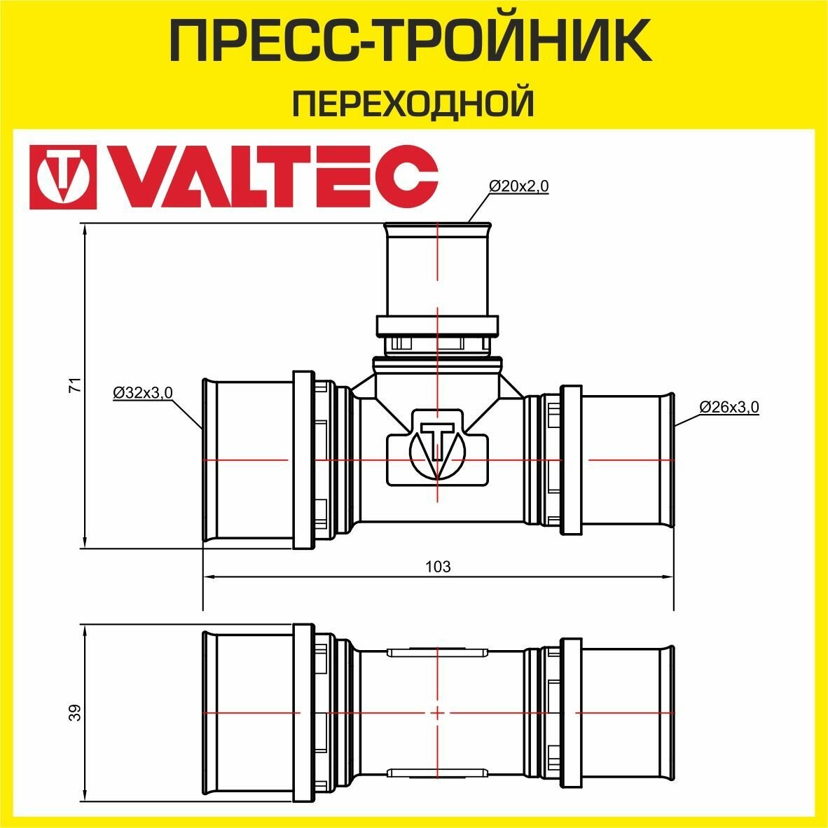2 шт — Тройник 32х20х26 мм VALTEC для труб из сшитого полиэтилена и металлопластиковых 32(3,0), 20(2,0), 26(3,0) / Пресс-фитинг переходной для монтажа отопления и водоснабжения, VTm.231. N.322026: сравнение цен, характеристики, фото, актуальное наличие и цены.