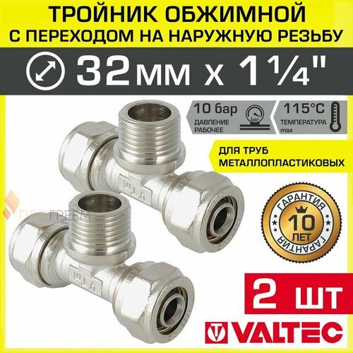 2 шт — Тройник обжимной 32 мм х 1 1/4″ НР х 32 мм для металлопластиковых труб 32(3,0) VALTEC / Латунный фитинг под обжим с переходом на наружную резьбу ДУ32, арт. VTm.333. N.320732: сравнение цен, характеристики, фото, актуальное наличие и цены.