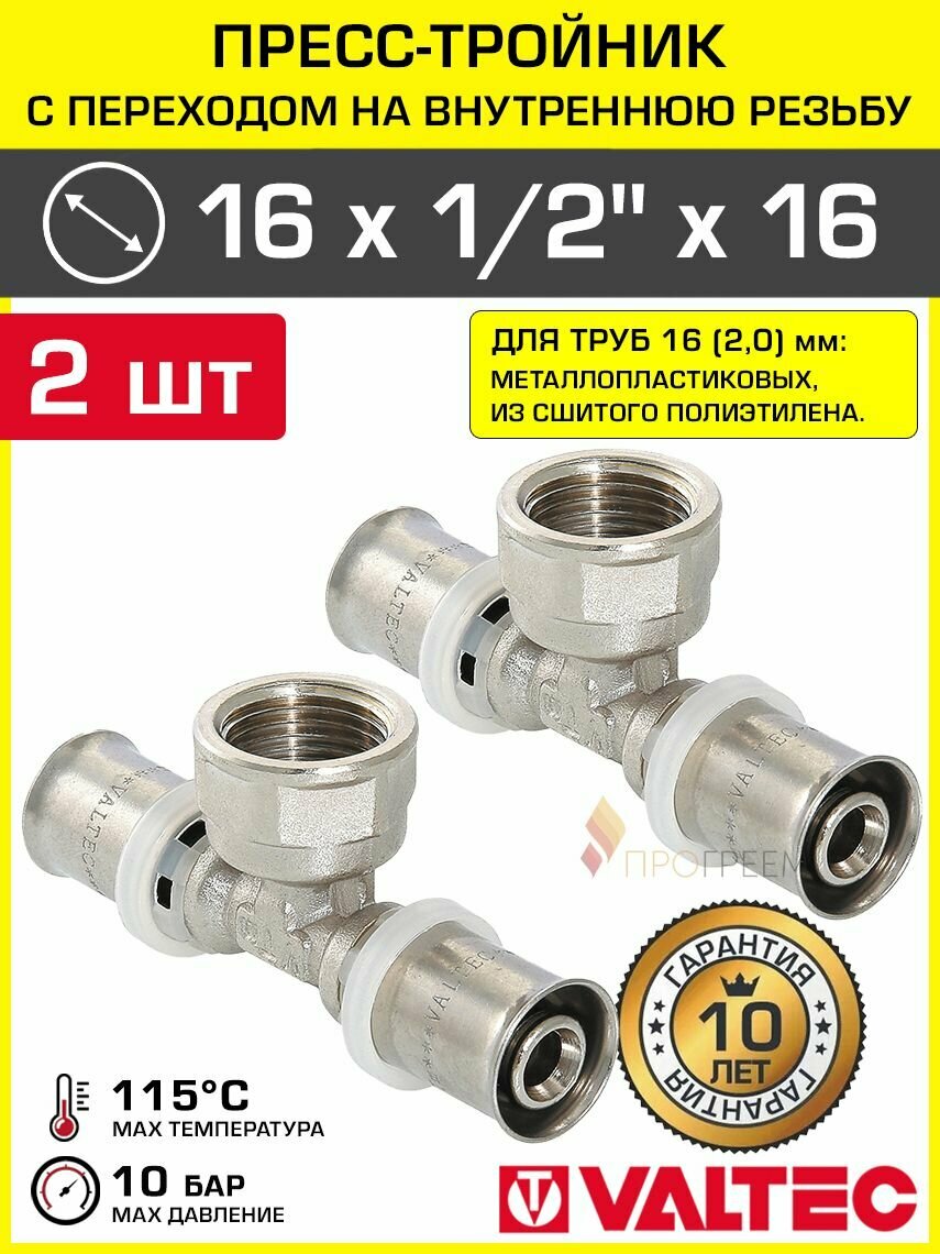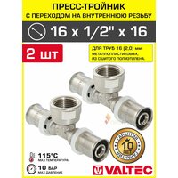 2 шт — Тройник переходной 16 мм x 1/2″ вн. р. x 16 мм VALTEC / Пресс-фитинг для присоединения труб из сшитого полиэтилена и металлопластика 16(2,0) с переходом на внутренную резьбу, VTm.232. N.160416: сравнение цен, характеристики, фото, актуальное наличие и цены.