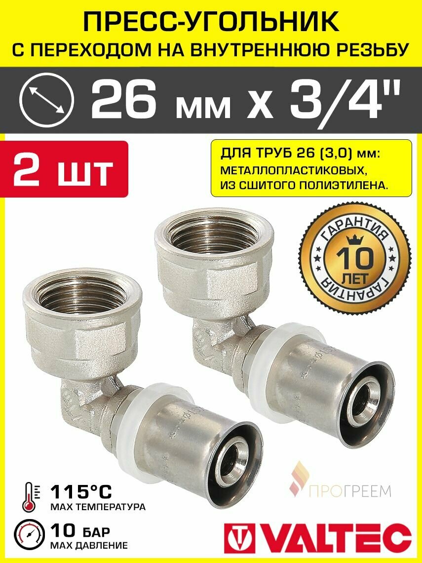 2 шт — Угольник 26 мм переходной на вн. р. 3/4″ VALTEC для труб из сшитого полиэтилена и металлопластиковых 26(3,0) / Пресс-фитинг угловой с переходом на резьбовое соединение, арт. VTm.252. N.002605: сравнение цен, характеристики, фото, актуальное наличие и цены.