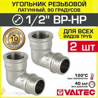 Купить 2 шт — Угольник 90 гр. 1/2″ ВР-НР VALTEC, латунный никелированный / Резьбовой фитинг угловой ДУ 15 для монтажа труб, арматуры в системе отопления и водоснабжения, арт. VTr.092. N.0004 с доставкой по всей России.