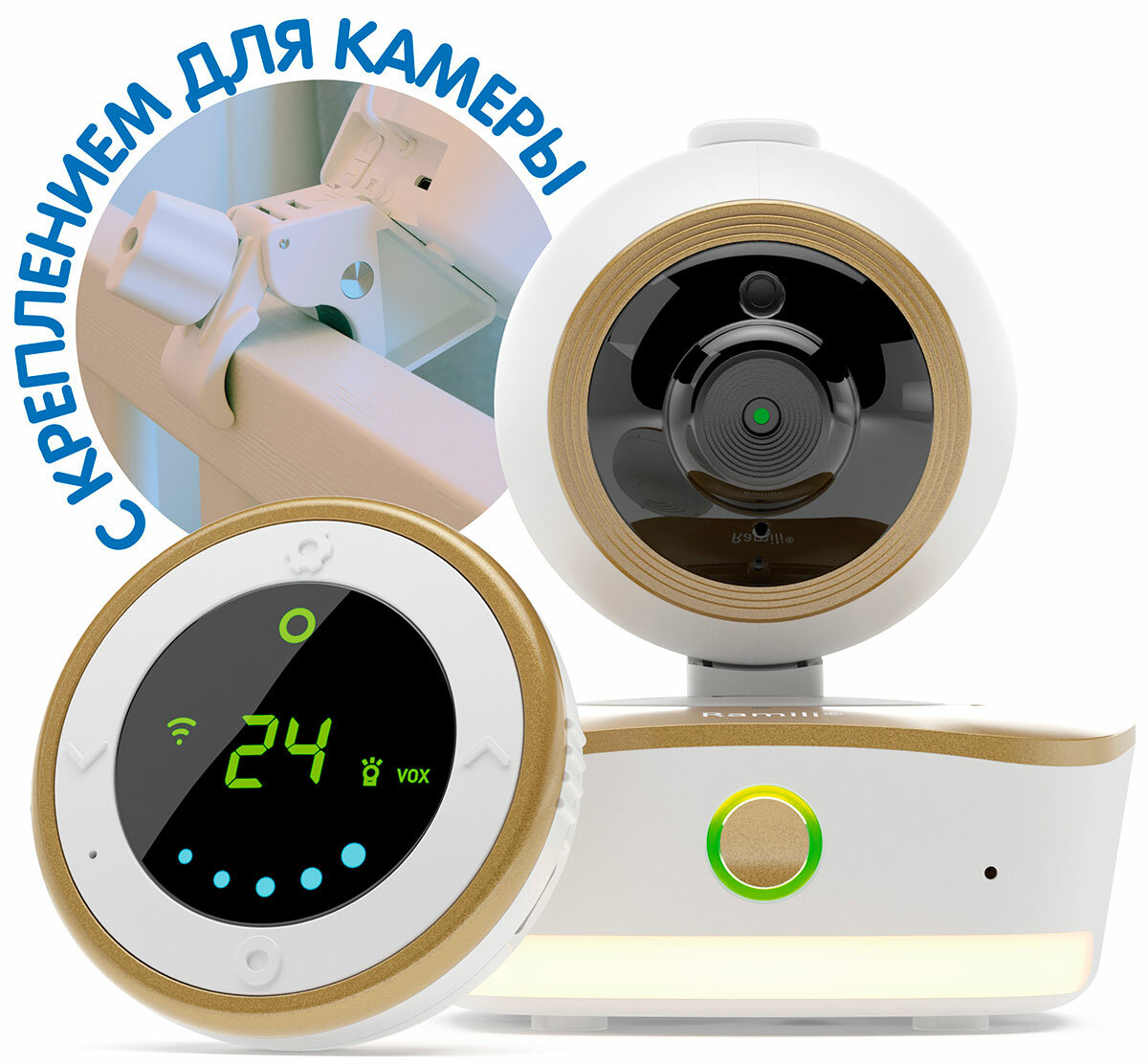 | Особенности | голосовая активация (VOX), датчик движения, датчик температуры, двусторонняя голосовая связь, колыбельные мелодии, ночник, подвижная камера, работа от сети 220 В, термометр, функция ночного видения |