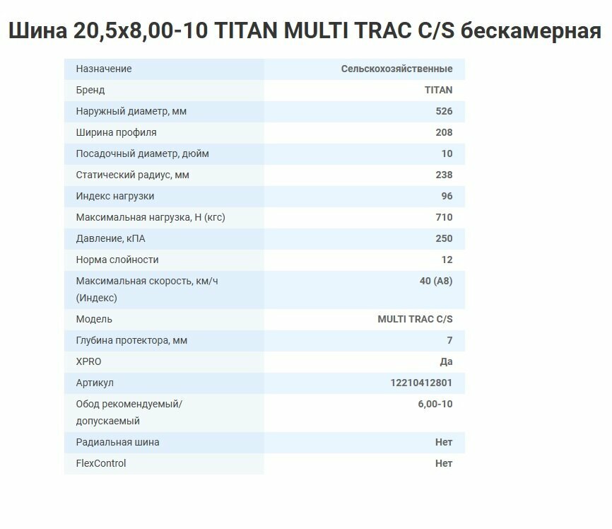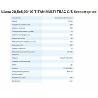 20,5/8,00-10 TITAN MULTI TRAC C/S TL 96А8 — Шина пневматическая прицепная с/х техника: сравнение цен, характеристики, фото, актуальное наличие и цены.