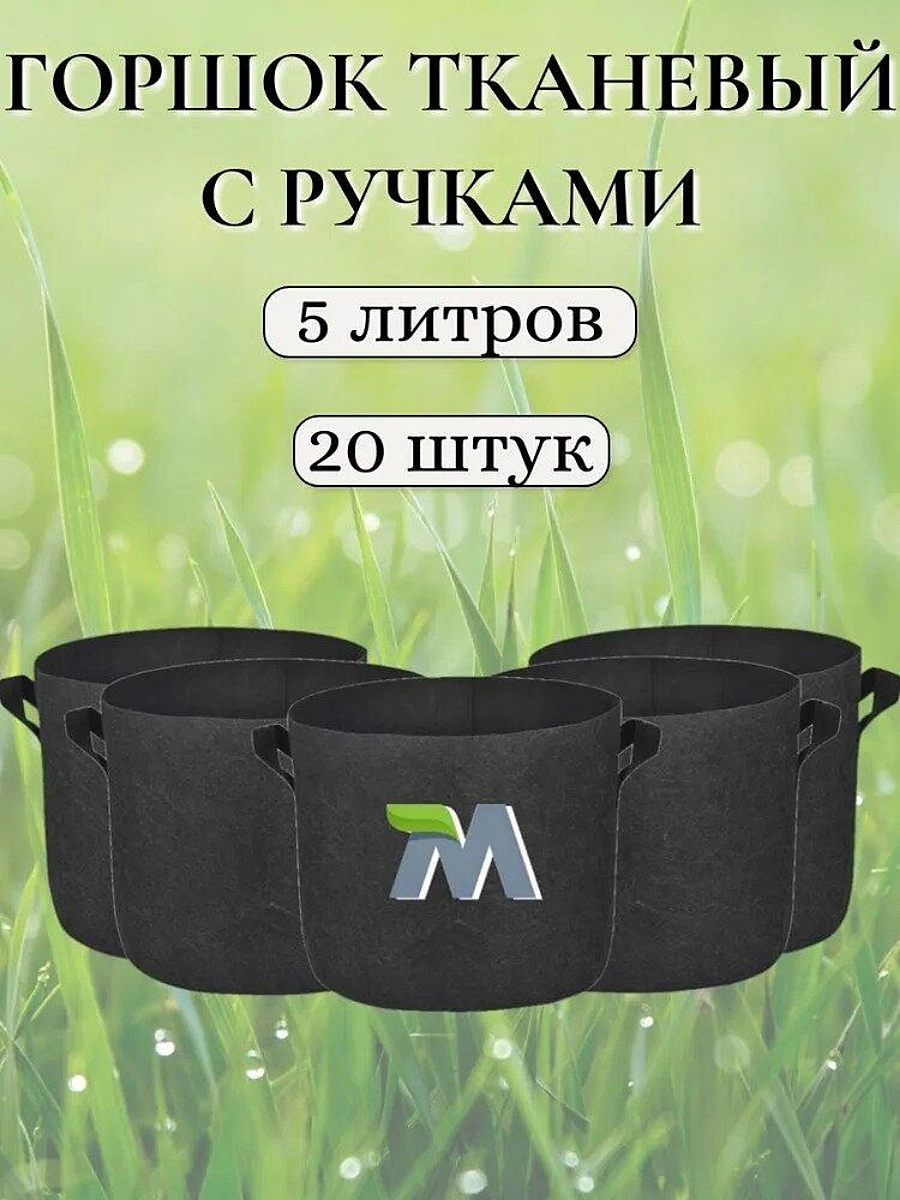 20 шт, 5 литров. Горшок тканевый с ручками для растений и цветов. Мешок из флиса: сравнение цен, характеристики, фото, актуальное наличие и цены.