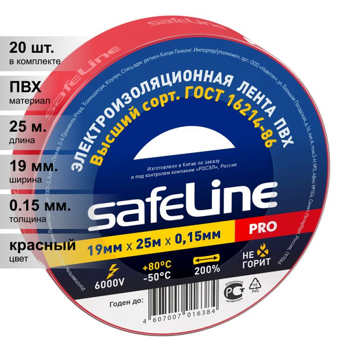 (20 шт.) Изолента ПВХ красная 19мм 25м Safeline: сравнение цен, характеристики, фото, актуальное наличие и цены.
