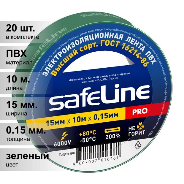 Купить (20 шт.) Изолента ПВХ зеленая 15мм 10м Safeline с доставкой по всей России. (20 шт.) Изолента ПВХ зеленая 15мм 10м Safeline: сравнение цен, характеристики, фото, актуальное наличие и цены.