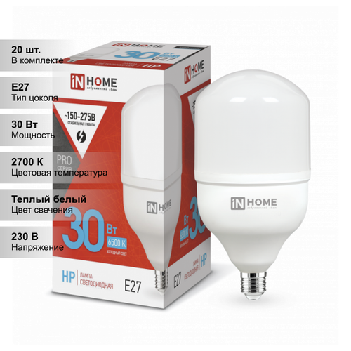 (20 шт.) Лампа светодиодная LED-HP-PRO 30Вт 230В Е27 6500К 2700Лм IN HOME: сравнение цен, характеристики, фото, актуальное наличие и цены.