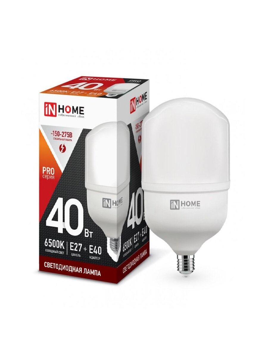 (20 шт.) Светодиодная лампочка ASD/InHome высокомощн. E27 40W (3600lm) 6500К 6K 230V с адаптером E40 181×100 HP-PRO 1101 Холодный белый. Цоколь E27: сравнение цен, характеристики, фото, актуальное наличие и цены.