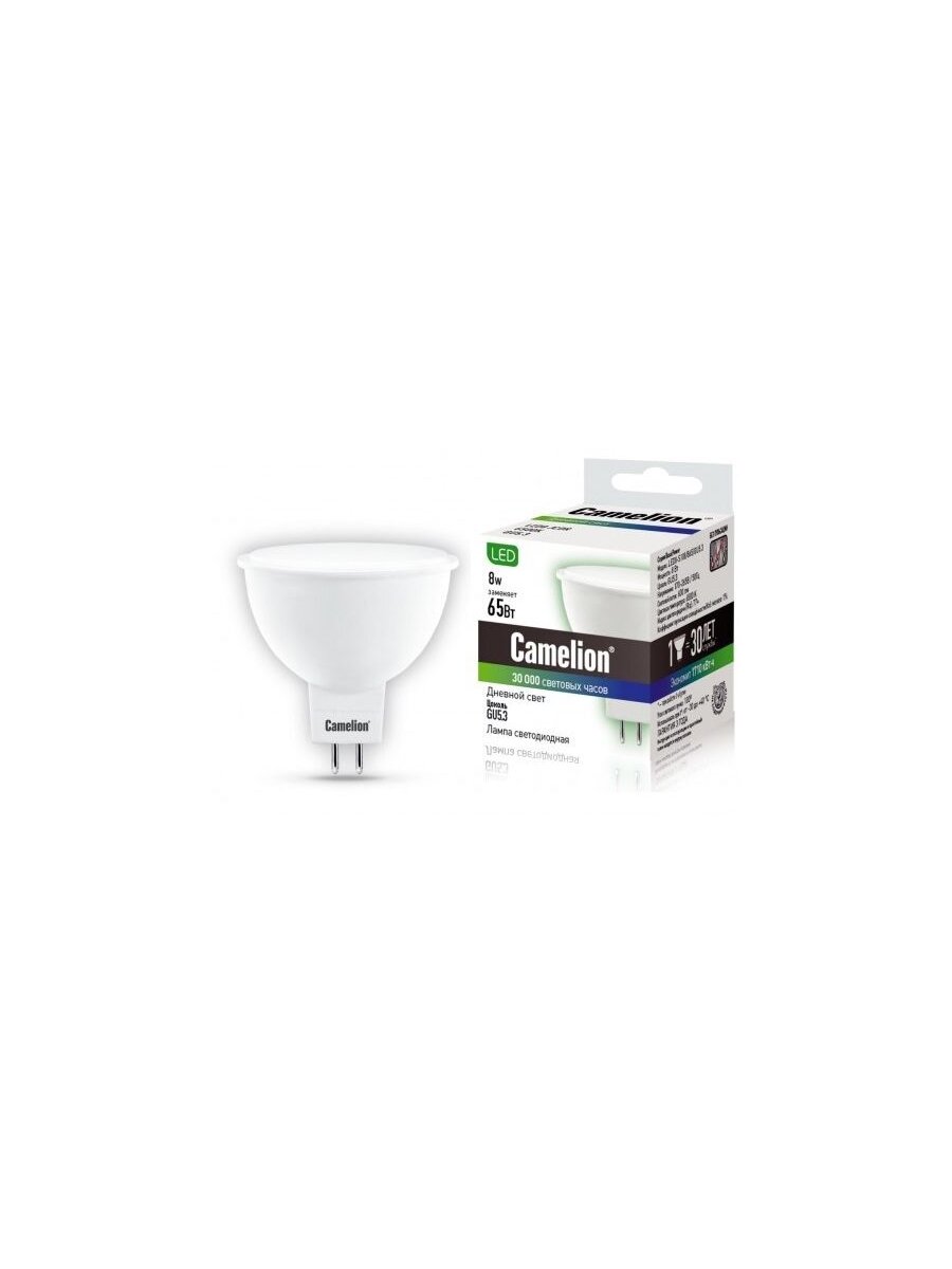 (20 шт.) Светодиодная лампочка Camelion MR16 GU5.3 220V 8W(600lm 100°) 6500K 6K матов. 50×46 пластик LED8-S108/865/GU5.3 Холодный белый. Цоколь GU5.3: сравнение цен, характеристики, фото, актуальное наличие и цены.