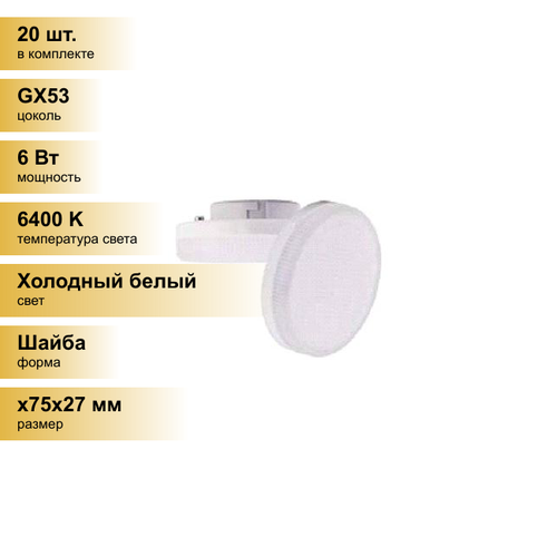 (20 шт.) Светодиодная лампочка Ecola GX53 св/д 6W 6400K 6K 27×75 матов. Light T5MD60ELC Холодный белый. Цоколь GX53: сравнение цен, характеристики, фото, актуальное наличие и цены.