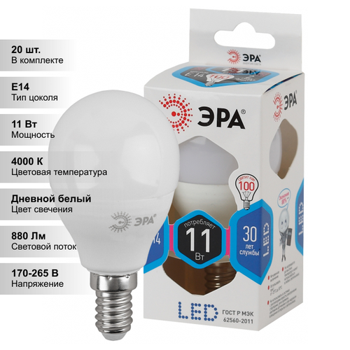 (20 шт.) Светодиодная лампочка ЭРА P45 11Вт 170-265В 4000К Е14: сравнение цен, характеристики, фото, актуальное наличие и цены.