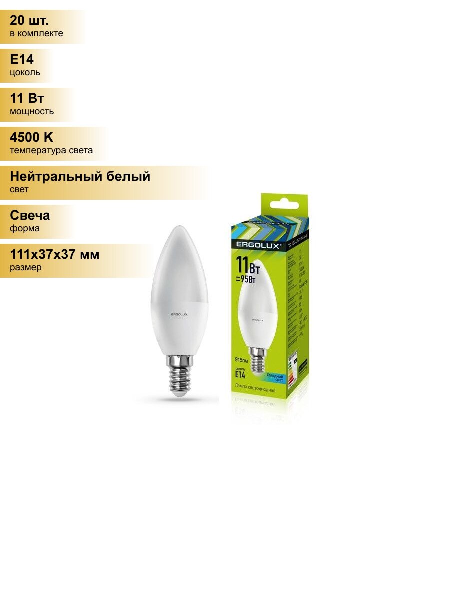 (20 шт.) Светодиодная лампочка Ergolux свеча C35 E14 11W(915lm 220°) 4500K 4K матовая 111×37 LED-C35-11W-E14-4K Нейтральный белый. Цоколь E14: сравнение цен, характеристики, фото, актуальное наличие и цены.