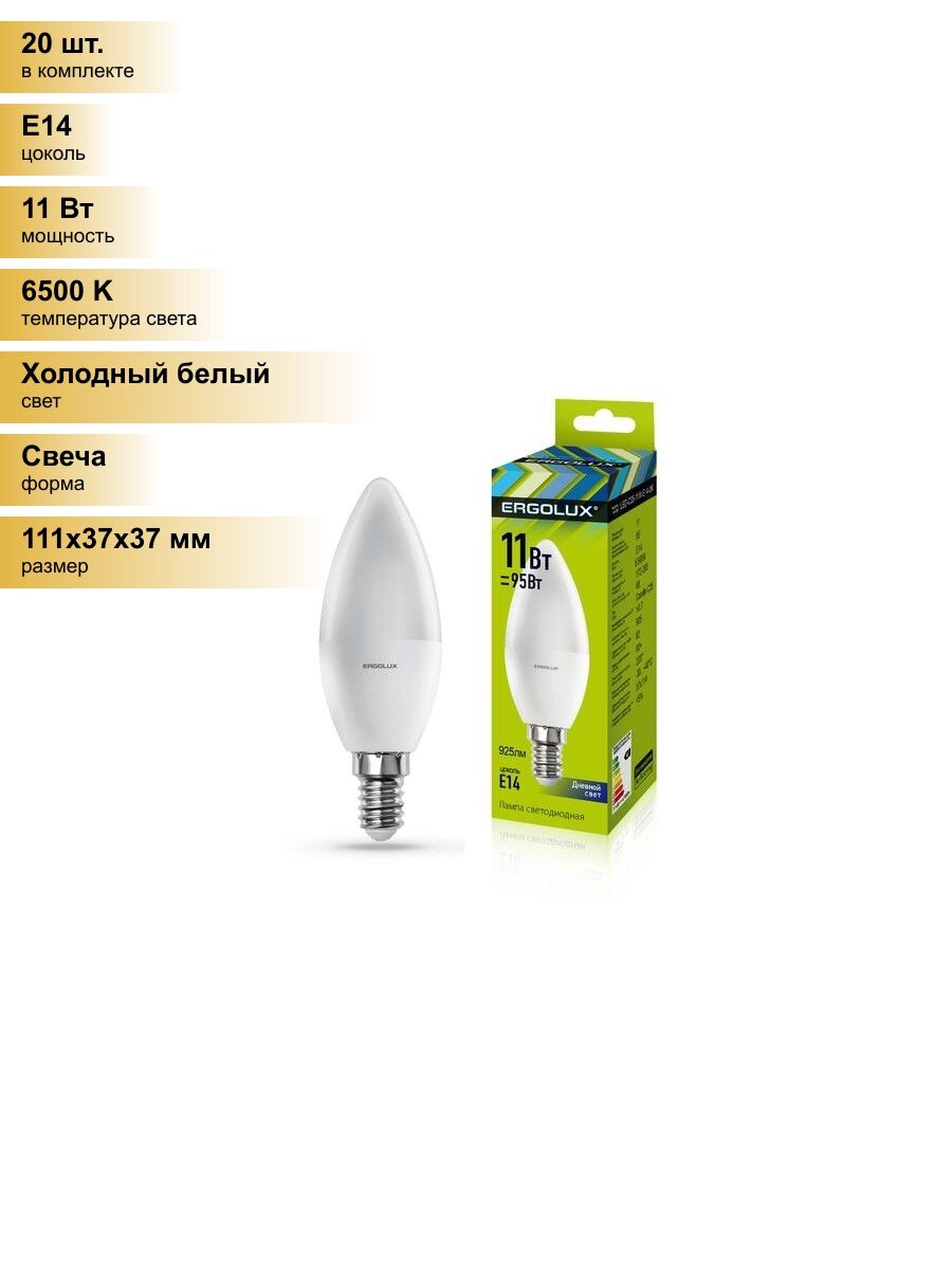 (20 шт.) Светодиодная лампочка Ergolux свеча C35 E14 11W(925lm 220°) 6500K 6K матовая 111×37 LED-C35-11W-E14-6K Холодный белый. Цоколь E14: сравнение цен, характеристики, фото, актуальное наличие и цены.