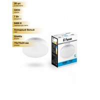 (20 шт.) Светодиодная лампочка Feron GX53 7W(560lm) 6400K 6K 24×75 матовая LB-451 25866 Холодный белый. Цоколь GX53: сравнение цен, характеристики, фото, актуальное наличие и цены.