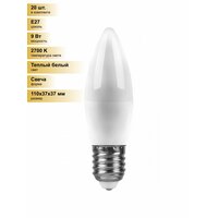 (20 шт.) Светодиодная лампочка Feron свеча C37 E27 9W(820lm) 2700K 2K матовая 100×37, LB-570 25936 Теплый белый. Цоколь E27: сравнение цен, характеристики, фото, актуальное наличие и цены.