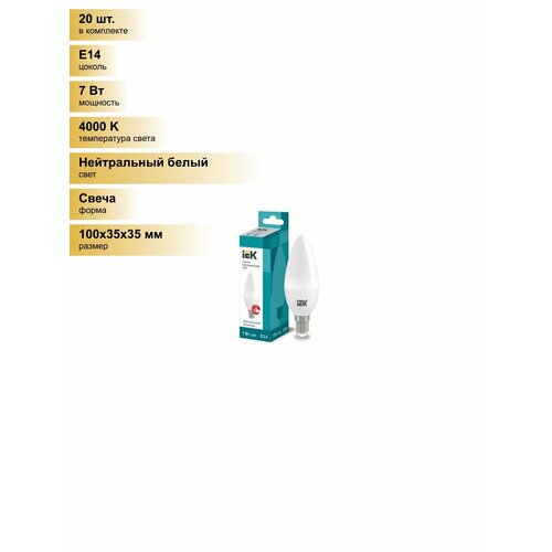(20 шт.) Светодиодная лампочка IEK свеча C35 E14 7W(630lm) 4000K 4K 100×35 матов. ECO LLE-C35-7-230-40-E14 Нейтральный белый. Цоколь E14: сравнение цен, характеристики, фото, актуальное наличие и цены.