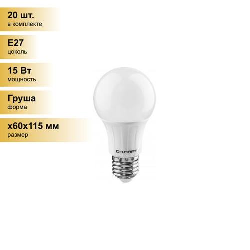 (20 шт.) Светодиодная лампочка онлайт ЛОН A60 E27 15W(1350lm) 4000K 4K 115×60 OLL-A60-15-230-4K-E27 61150 Нейтральный белый. Цоколь E27: сравнение цен, характеристики, фото, актуальное наличие и цены.