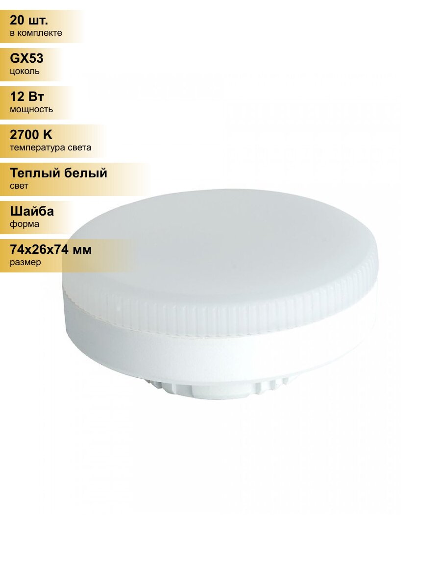 (20 шт.) Светодиодная лампочка Saffit GX53 12W(970Lm) 2700K 2K 26×74 SBGX5312 55188 Теплый белый. Цоколь GX53: сравнение цен, характеристики, фото, актуальное наличие и цены.