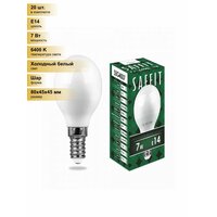 (20 шт.) Светодиодная лампочка Saffit шар G45 E14 7W(560lm) 6400K 6K матовая, пластик 80×45 SBG4509 55123 Холодный белый. Цоколь E14: сравнение цен, характеристики, фото, актуальное наличие и цены.