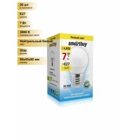 (20 шт.) Светодиодная лампочка Smartbuy шар G45 E27 7W(550lm) 3000K 2K матовая пластик SBL-G45-07-30K-E27 Нейтральный белый. Цоколь E27: сравнение цен, характеристики, фото, актуальное наличие и цены.