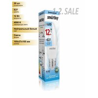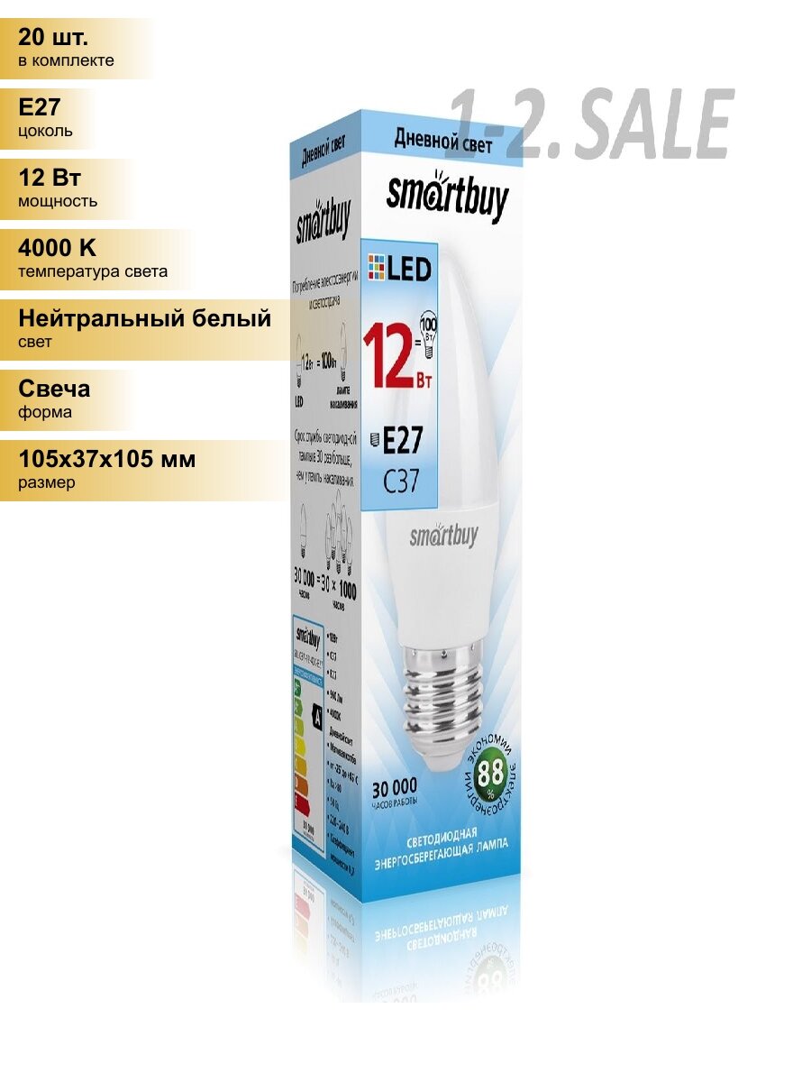 (20 шт.) Светодиодная лампочка Smartbuy свеча C37 Е27 12W (960 lm) 4000К 4К 37х105 матовая пластик SBL-C37-12-40K-E27 Нейтральный белый. Цоколь E27: сравнение цен, характеристики, фото, актуальное наличие и цены.