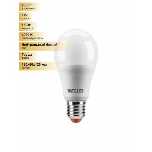 (20 шт.) Светодиодная лампочка Wolta лампа св/д ЛОН A60 E27 15W(1500lm) 3000K 2K 2K 115x60 25Y60BL15E27 Нейтральный белый. Цоколь E27
