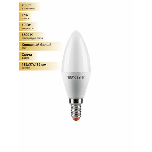 Светодиодная лампочка. Лампочка Wolta лампа св/д свеча C37 E14 10W(900Lm) 6500K 6K 115X37 25WC10E14 (20 шт.)