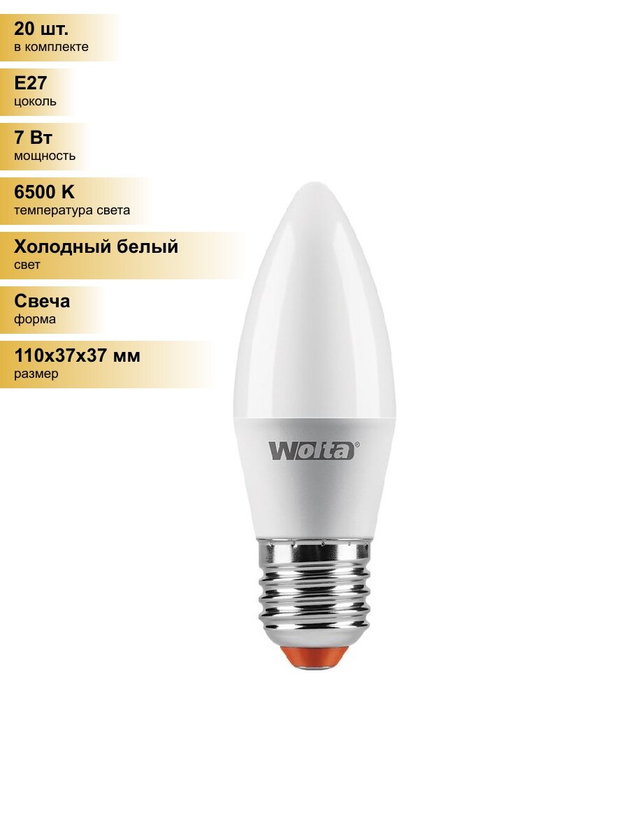 (20 шт.) Светодиодная лампочка Wolta лампа св/д свеча C37 E27 7,5W(625Lm) 6500K 6K 100X37 25WC7.5E27 Холодный белый. Цоколь E27: сравнение цен, характеристики, фото, актуальное наличие и цены.