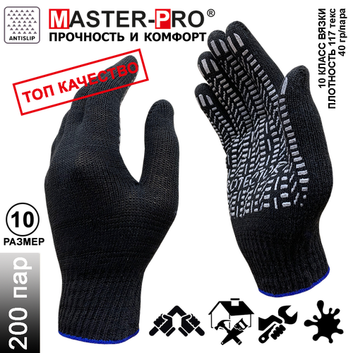 200 пар. Категория А. Перчатки рабочие х/б Master-Pro шерл (антрацит протектор), 10 класс вязки, плотность 5/10, р-р 10: сравнение цен, характеристики, фото, актуальное наличие и цены.