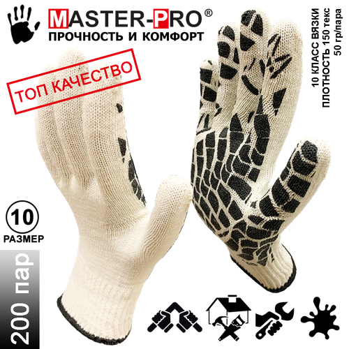 Купить 200 пар. Категория А+. Перчатки рабочие х/б с ПВХ покрытием Master-Pro драйв, 10 класс вязки, плотность 7/10, р. 10 (XL) с доставкой по всей России.