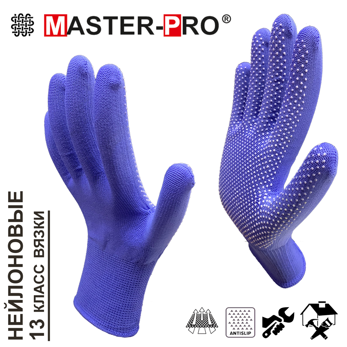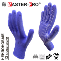 200 пар. Категория А. Перчатки рабочие Master-Pro МИКРОТАЧ синий, нейлоновые с ПВХ покрытием, размер 10 (XL): сравнение цен, характеристики, фото, актуальное наличие и цены.