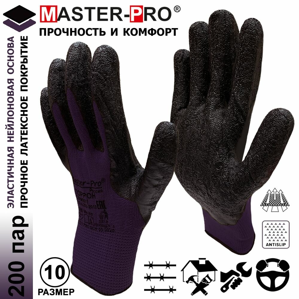 200 пар. Перчатки рабочие Master-Pro торрон-vb, нейлоновые с рельефным латексным покрытием, размер 10 (L-XL): сравнение цен, характеристики, фото, актуальное наличие и цены.