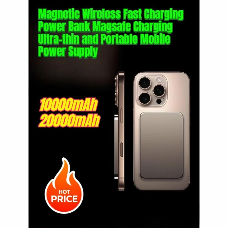 20000 мАч Магнитная беспроводная быстрая зарядка Power Bank Magsafe Charging Ультратонкий и портативный мобильный источник питания 20000mah, Titanium Gold