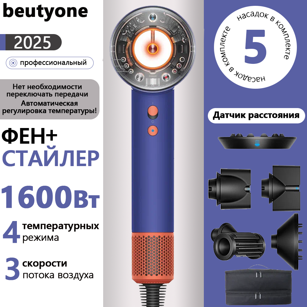 5 В 1 Фен-стайлер для волос профессиональный с насадками Beutyone 2265HD16 использует новейшие технологии 2025г. Технология Air Multiplier, скорость воздушного потока до 340 м/с. Интеллектуальное управление температурой, мониторинг температуры 40 раз/мин, может постоянно поддерживаться при заданной температуре. Избегайте повреждения волос. 5 В 1 Фен-стайлер для волос профессиональный с насадками Beutyone 2265HD16 оснащен интеллектуальным чипом, который может распознавать окружающие звуки и издавать противоположный звук для снижения уровня шума.