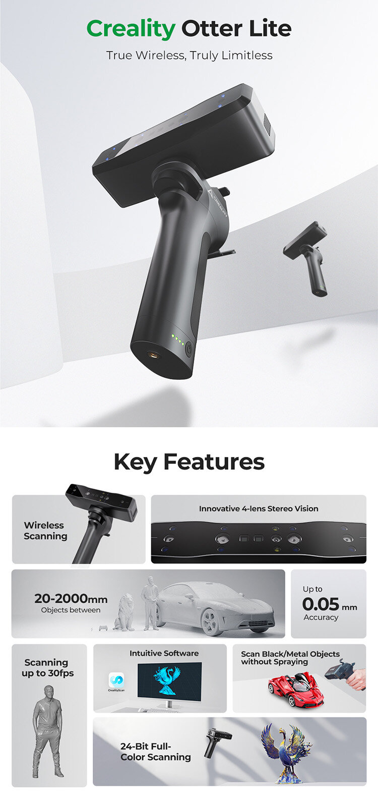 Купить 2025 Новый 3D-сканер Creality Otter Lite, инновационный 4-объективный Stereo Vision, 24-битное полноцветное сканирование, точность сканирования 0,05 мм, Mac Windows с доставкой по всей России.