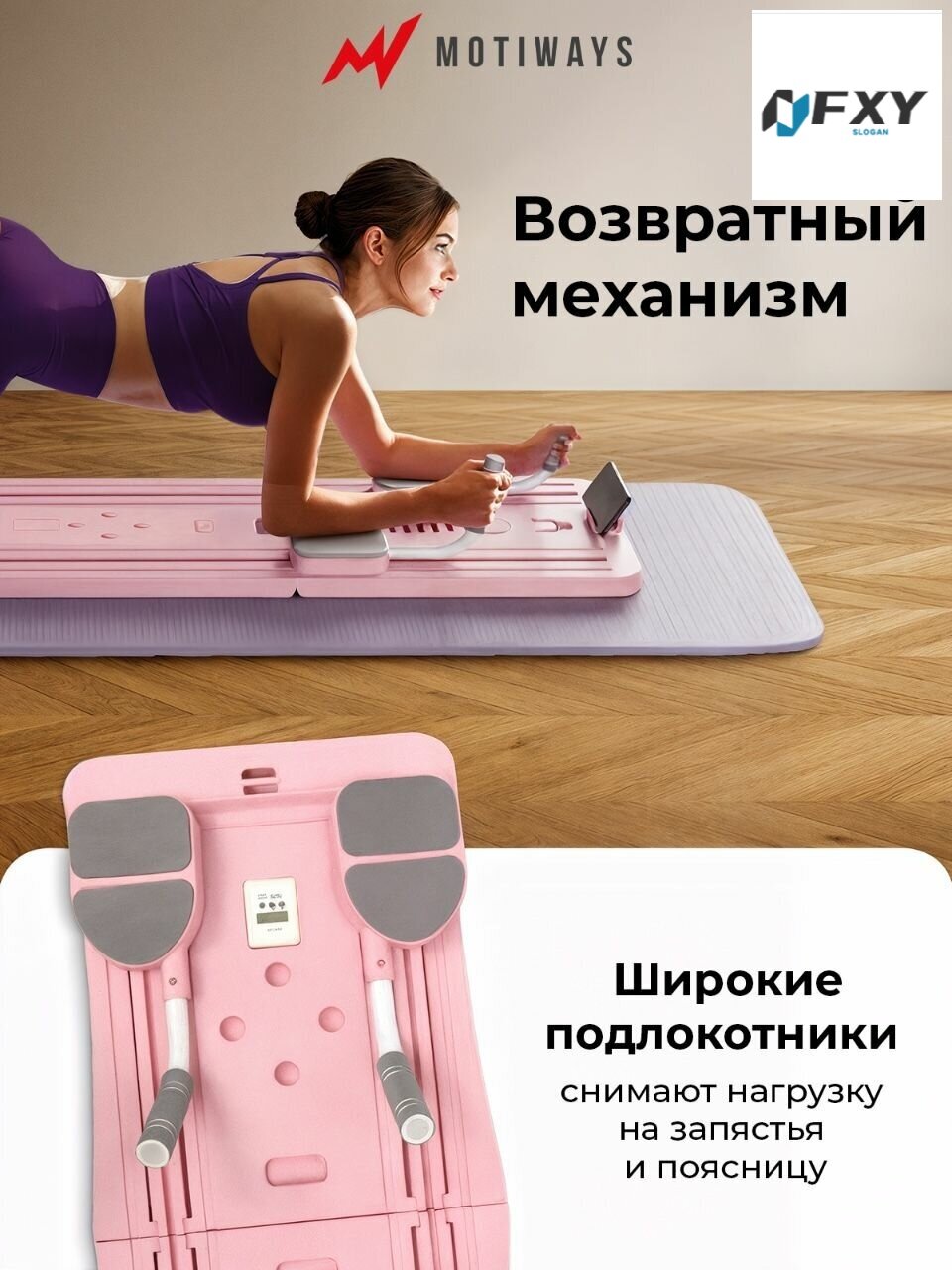 Доска для пилатеса Motiways, многофункциональный тренажер, розовый