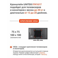 Купить 21011 Кронштейн UNITEKI FM1617 для телевизора 13-28 на стену с доставкой по всей России.