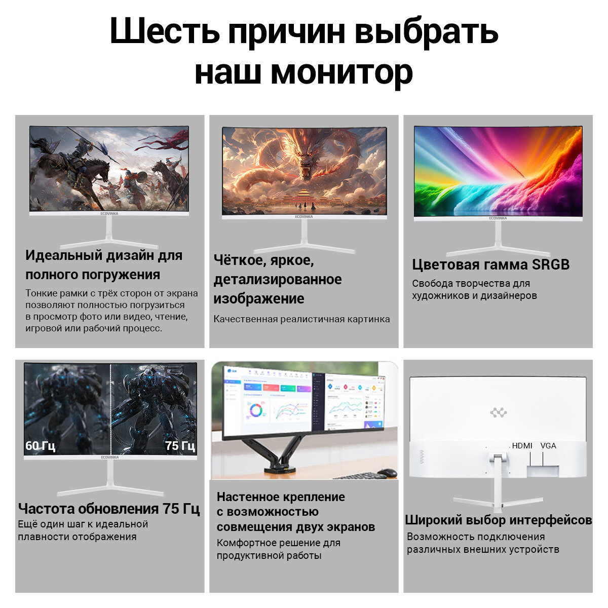 Купить 22″ Монитор ECOVINKA SV9 VA 75Hz Белый ультратонкий компьютерный ЖК-дисплей домашний / бизнес-офис / аудио и видео высокой четкости полноэкранный с доставкой по всей России.