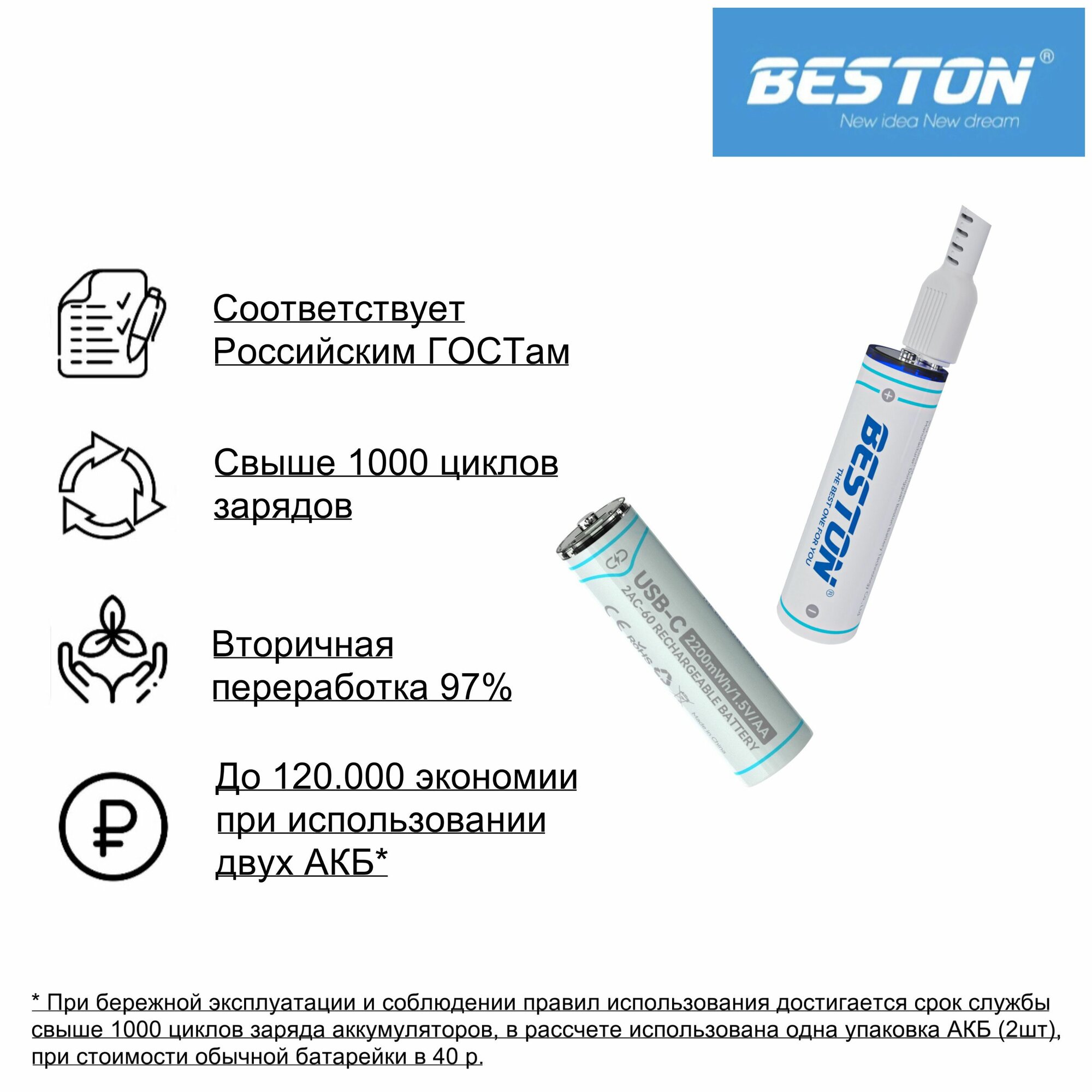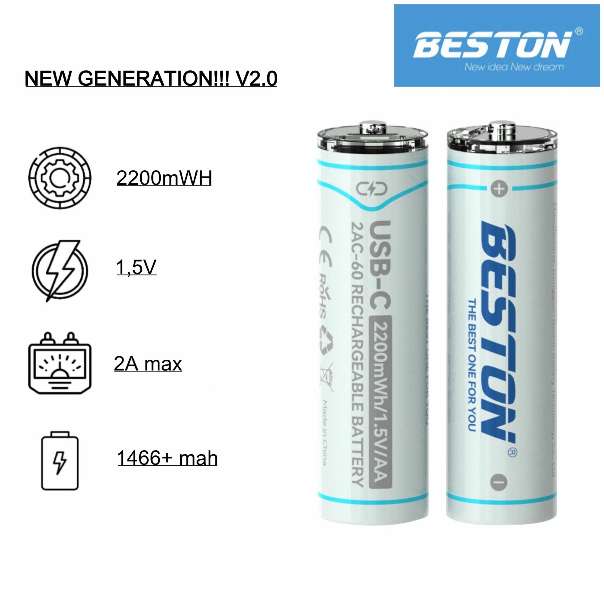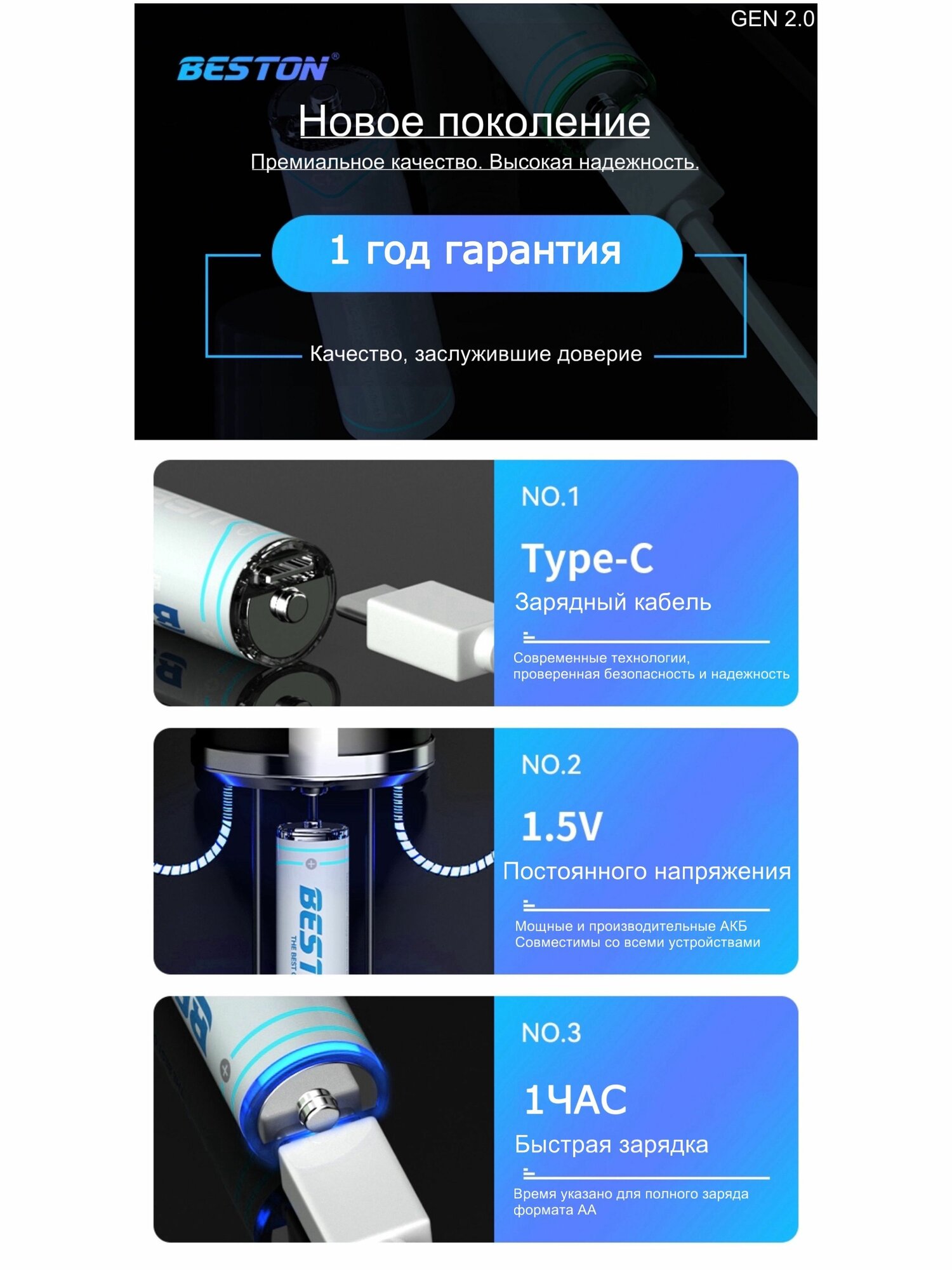 Купить 2200 mWh Аккумуляторные батарейки (FR06) AA Li-ion пальчиковые 1,5V, 4 шт,Type-C USB, АА с доставкой по всей России.