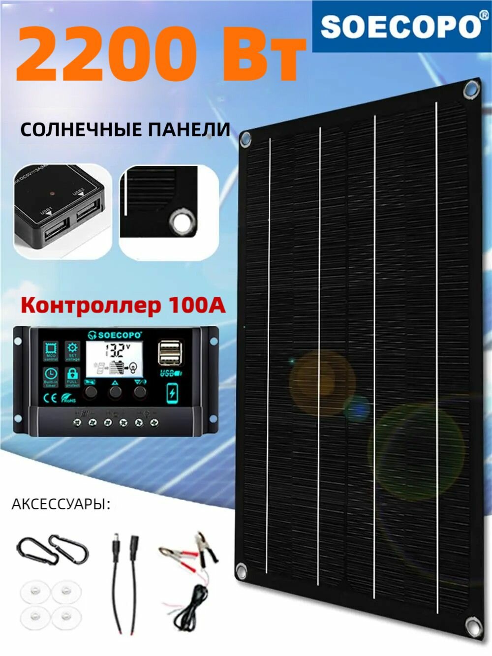 Купить 2200 Вт солнечный комплект, двойной выход USB 5 вольт 3 ампера адаптивный высокоэффективный контроллер (100А) с доставкой по всей России.