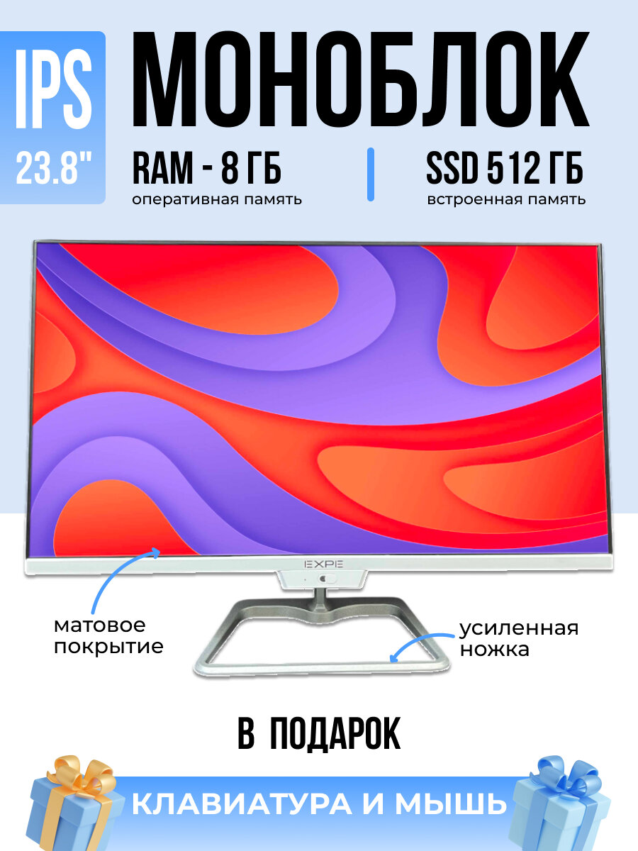 Моноблок обладает мощным 4-ядерным процессором Intel N5095. Безрамочный экран 23.8 дюйма имеет матрицу IPS с разрешением Full-HD и обеспечивает угол обзора до 178°. Матовая поверхность сохраняет яркость изображения даже при ярком свете. Идеально подходит как для выполнения рабочих задач, учебы, так и для развлечений. Система 64-битная. Возможность использования двухдиапазонного Wi-Fi (2,4 ГГц и 5 ГГц). Встроенные динамики мощностью 3 Вт каждый (в сумме 6 Вт). Объем оперативной памяти DDR4 8 ГБ и накопитель SSD M.2 ёмкостью 512 Гб обеспечивают высокую скорость обработки информации. Встроенное графическое ядро Intel UHD Graphics. Бесшумная работа. Поставляется с предустановленной операционной системой Windows 11 Pro. В комплекте: клавиатура и беспроводная аккумуляторная мышь в подарок! Наслаждайтесь работой и развлечениями!