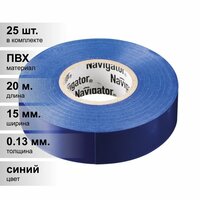 (25 шт.) Изолента ПВХ синяя 15мм 20м Navigator NIT-B15-20/B 71 107 Электроизоляционная лента (изолента) Navigator серии NIT на основе ПВХ - расходный материал при электротехнических работах, используемый для обмотки проводов и кабелей с целью их электроизоляции. Изолента общего применения 0,13x15 мм Цвет синяя Ширина ленты 15 мм Длинна рола 20 м