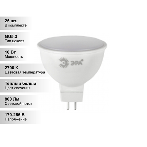 Купить (25 шт.) Светодиодная лампочка ЭРА MR16 10Вт 170-265В 2700К GU5.3 с доставкой по всей России. (25 шт.) Светодиодная лампочка ЭРА MR16 10Вт 170-265В 2700К GU5.3: сравнение цен, характеристики, фото, актуальное наличие и цены.