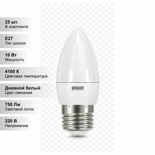 Купить (25 шт.) Светодиодная лампочка Gauss С37 10Вт 220В 4100K E27 с доставкой по всей России. (25 шт.) Светодиодная лампочка Gauss С37 10Вт 220В 4100K E27: сравнение цен, характеристики, фото, актуальное наличие и цены.
