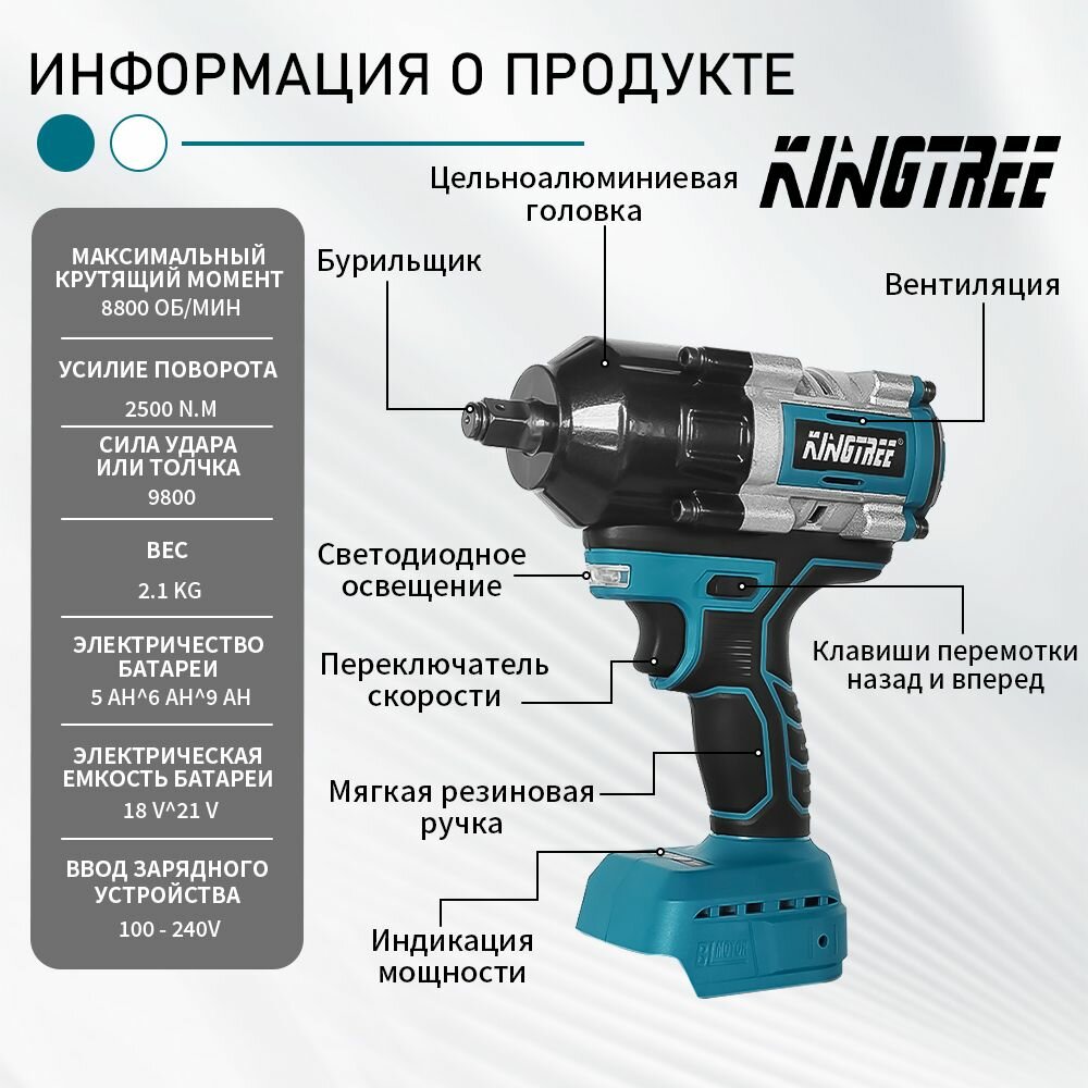 2500Нм Гайковерт Аккумуляторный Ударный Бесщеточный Kingtree/DTW900 1/2″ (2 АКБ 5,0 Ач): сравнение цен, характеристики, фото, актуальное наличие и цены.