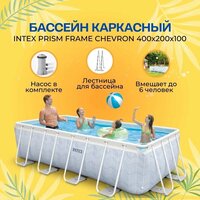 Новый 26780 Каркасный бассейн прямоугольный Intex Prism Frame Chevron, 400х200х100 см идеально подходит для придания свежего и современного вида вашему саду. Чаша бассейна из трехслойного прочного ПВХ имеет рисунок елочка. Бассейн устойчив к разрывам и ударам благодаря тройному слою ПВХ: развлекайтесь без мыслей! Технические характеристики