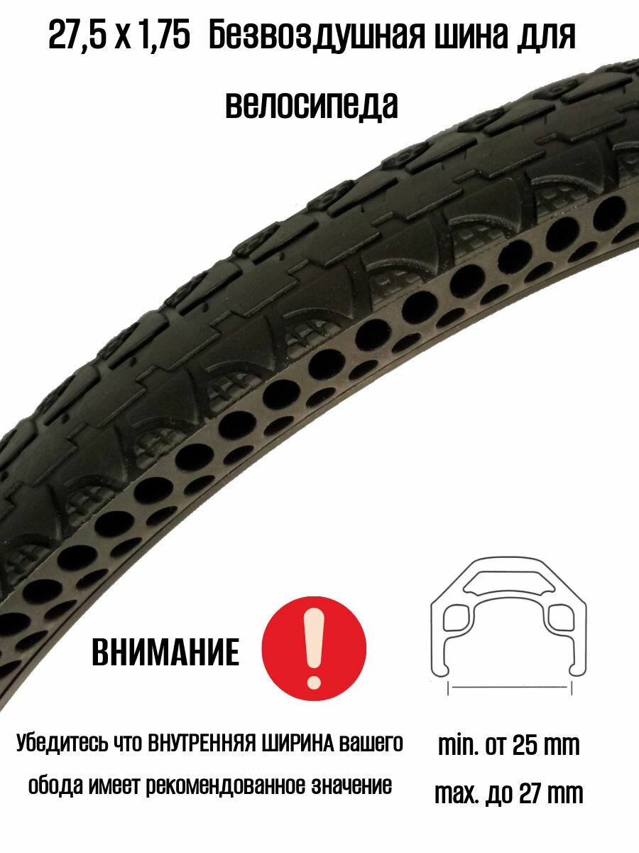 Безвоздушная перфорированная шина для велосипеда 27,5х1.75 (602 - 25), черная