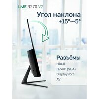 Это основные характеристики монитора Lime R270 V2 Black. Они могут быть полезны при выборе монитора для работы или развлечений. Однако для более детального понимания возможностей этого монитора рекомендуется обратиться к его подробному описанию в документации производителя или на сайте продавца.