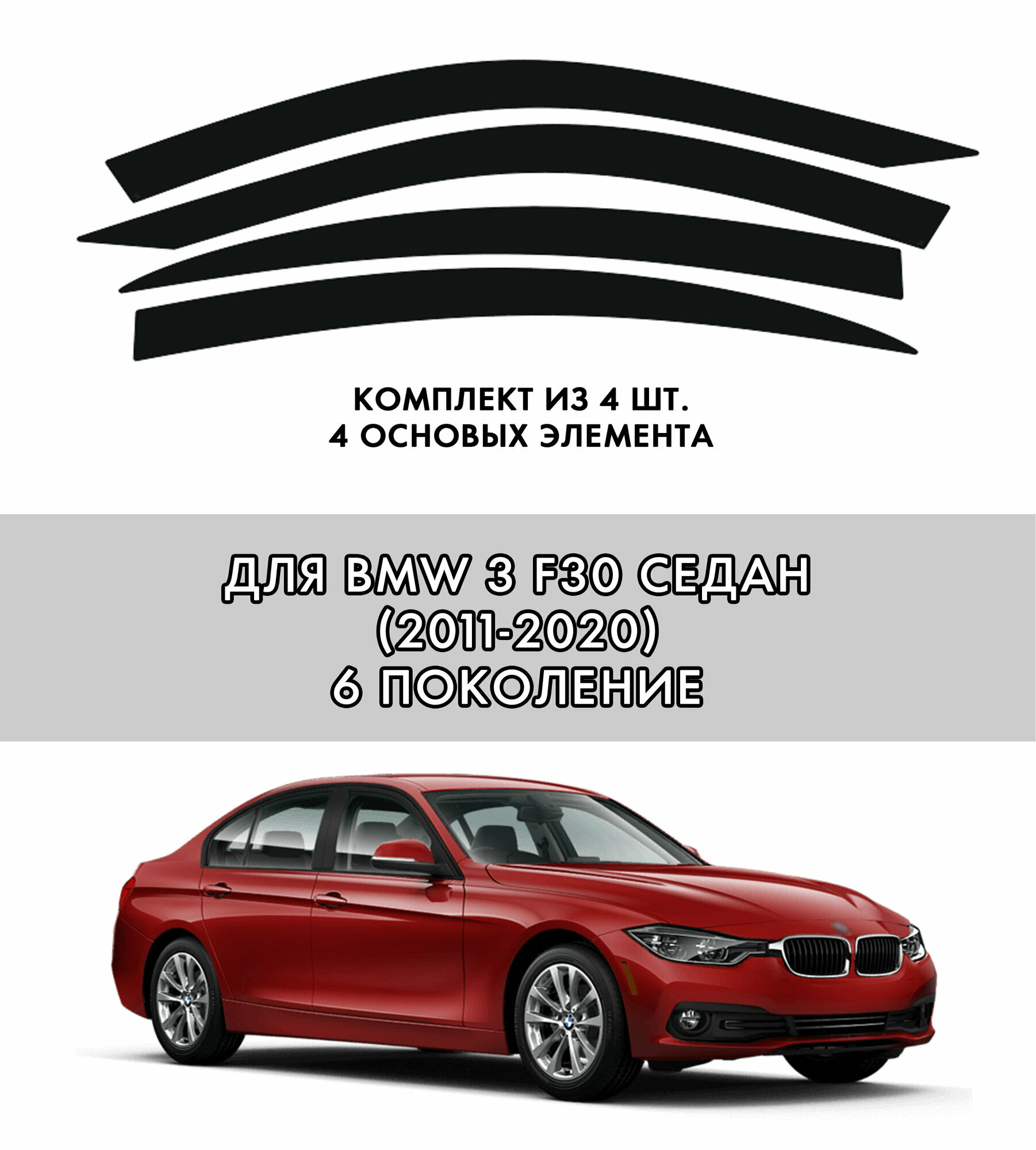2D дефлекторы для BMW 3 F30 седан (2011-2020) 6 поколение / Ветровики на БМВ 3 ф30 седан / 2d дефлекторы. Комплект 4 шт.: сравнение цен, характеристики, фото, актуальное наличие и цены.